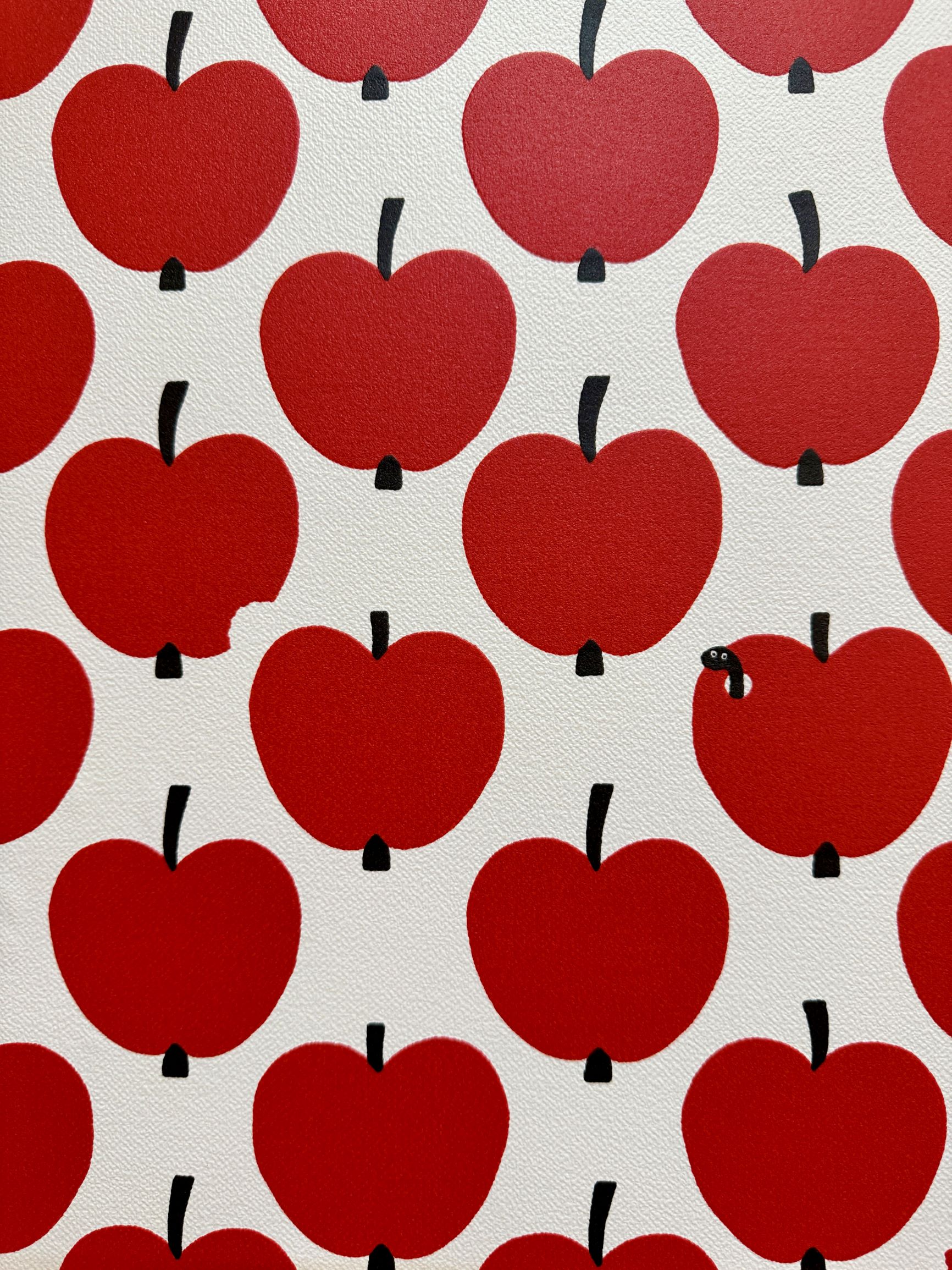 橋本 ときどきリンゴから顔を出すいも虫の位置も、オリジナルのままではリピートが固定で同じ場所に続いてしまうのですが、壁紙ではそれがランダムに見えるように調整してもらったんですよね。